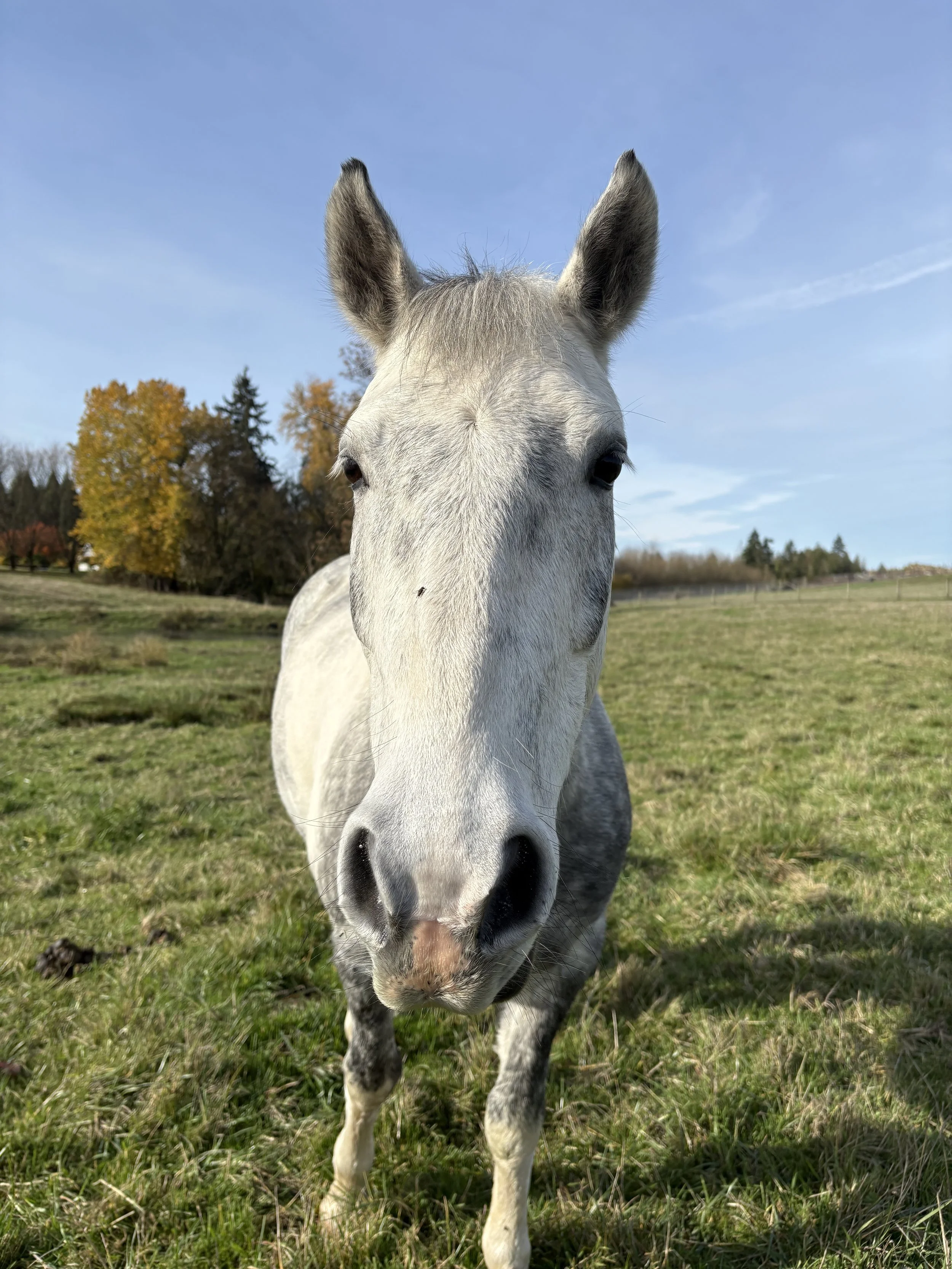 After a glittering career as a hunter, Rue hung up his show boots and transitioned to a new role: a devoted, affectionate heart horse for humans 4 feet and under. Rue is all about loyalty, friendship, and - let’s be honest - being spoiled. He’s basically a celebrity in the barn, accepting pampering with dignified grace… unless you’re brushing his mane a little too long, in which case, he’ll give you the side-eye.